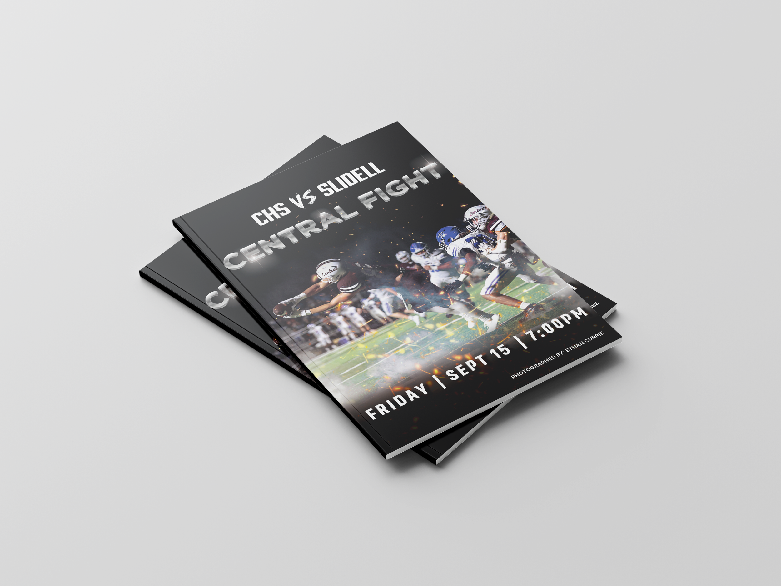 Central High School creates a football program every year before the beginning of their upcoming football season. In 2023, Central decided they wanted a change to their football programs, and decided they wanted our help to design the football programs for the new year. The program consists of various ads, both business and personal ads, football schedules, and teams. For this project, I worked alone designing the layout and the personal ads for the students. Every week when there was a home game, I would create a different cover that matches the theme of the upcoming game. Through various revisions and proofs with the client, we were able to create a cohesive final program to be shared at football games for the 2023 and 2024 season.